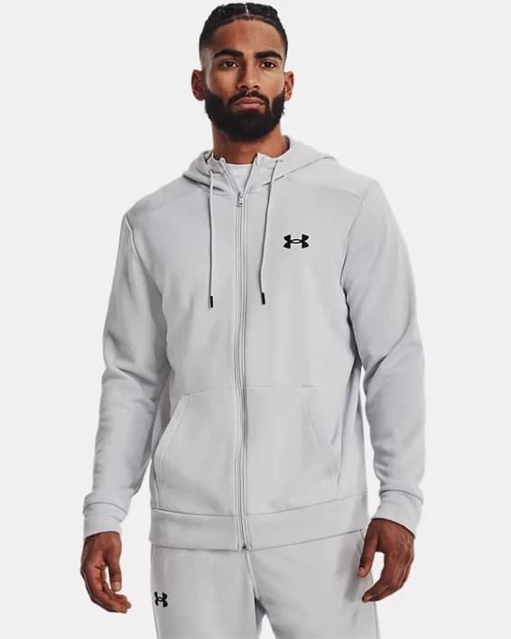 Stay warm and comfortable during your outdoor activities with our Men's Armour Fleece® Full-Zip Hoodie. This hoodie features Armour Fleece® technology that traps in heat while still allowing for breathability, so you stay warm without feeling suffocated. The full-zip design makes it easy to take on and off, and the adjustable drawstring hood provides extra protection against the elements. With a sleek athletic fit and a variety of color options, this hoodie is perfect for both casual wear and active pursuits. Whether you're hitting the trails or running errands, this full-zip hoodie is sure to keep you feeling cozy and looking stylish.