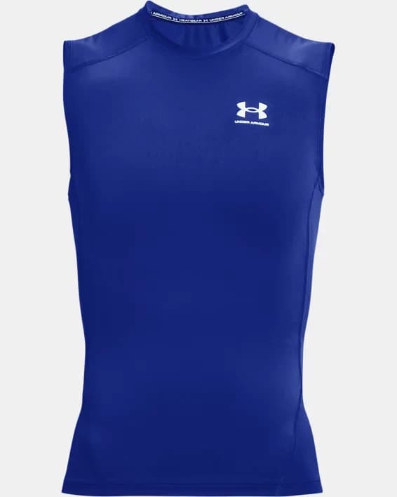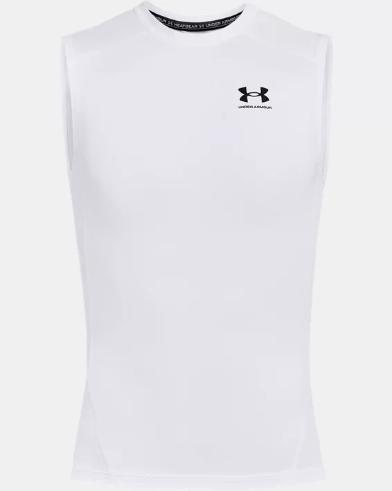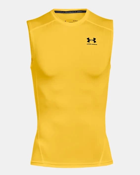 Introducing the Men's HeatGear® Sleeveless shirt, designed to keep you cool and comfortable during intense workouts. This sleeveless shirt features HeatGear® fabric, which wicks away sweat and dries quickly, allowing you to stay focused on your training. The ultra-soft, smooth material provides a chafe-free experience, while the 4-way stretch construction allows for maximum mobility and flexibility. With a variety of colors and sizes available, this HeatGear® sleeveless shirt is a must-have addition to any athlete's wardrobe. Whether you're hitting the gym or going for a run, this sleeveless shirt will help you push your limits and achieve your fitness goals.
