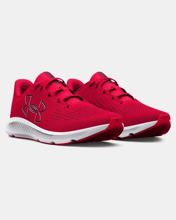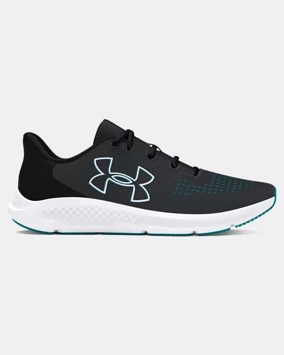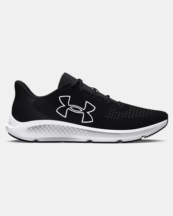 Introducing the Men's UA Charged Pursuit 3 Big Logo Running Shoes, designed for the serious runner who demands performance and style. These shoes feature UA's signature Charged Cushioning midsole, providing a responsive and energy-returning ride that will keep you going mile after mile. The lightweight and breathable upper material allows for maximum airflow, keeping your feet cool and comfortable during even the most intense workouts.The big UA logo adds a bold touch to the sleek design, making these shoes a standout in both performance and aesthetics. With a durable rubber outsole for enhanced traction and support, these running shoes are ready to take on any terrain. Whether you're hitting the track or the trail, the Men's UA Charged Pursuit 3 Big Logo Running Shoes are the perfect choice for those who refuse to compromise on quality and style.
