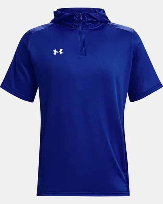 Introducing the Men's UA Command Short Sleeve Hoodie, perfect for those who want a lightweight and versatile option for their workout and casual wear. This short sleeve hoodie features a loose fit for ultimate comfort and mobility, and is made with UA Tech fabric for quick-drying and ultra-soft feel. The anti-odor technology prevents the growth of odor-causing microbes, keeping you fresh all day long. With a 4-way stretch construction, this hoodie allows you to move freely during any activity. Whether you're hitting the gym or running errands, the Men's UA Command Short Sleeve Hoodie is the perfect addition to your wardrobe.