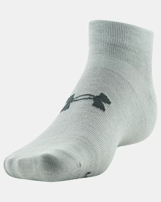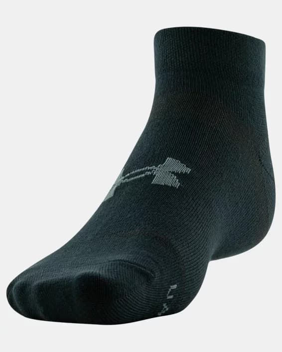Introducing the Men's UA Essential 6-Pack Low Cut Socks - the perfect addition to your athletic wardrobe. These low cut socks are designed to provide ultimate comfort and support during your most intense workouts. The moisture-wicking technology ensures your feet stay dry and cool, while the cushioned footbed offers additional support and protection. Made with a blend of polyester and spandex, these socks are engineered to stay in place and provide a snug fit, so you can focus on your performance without any distractions. Whether you're hitting the gym or going for a run, the Men's UA Essential 6-Pack Low Cut Socks are the essential choice for every active man.