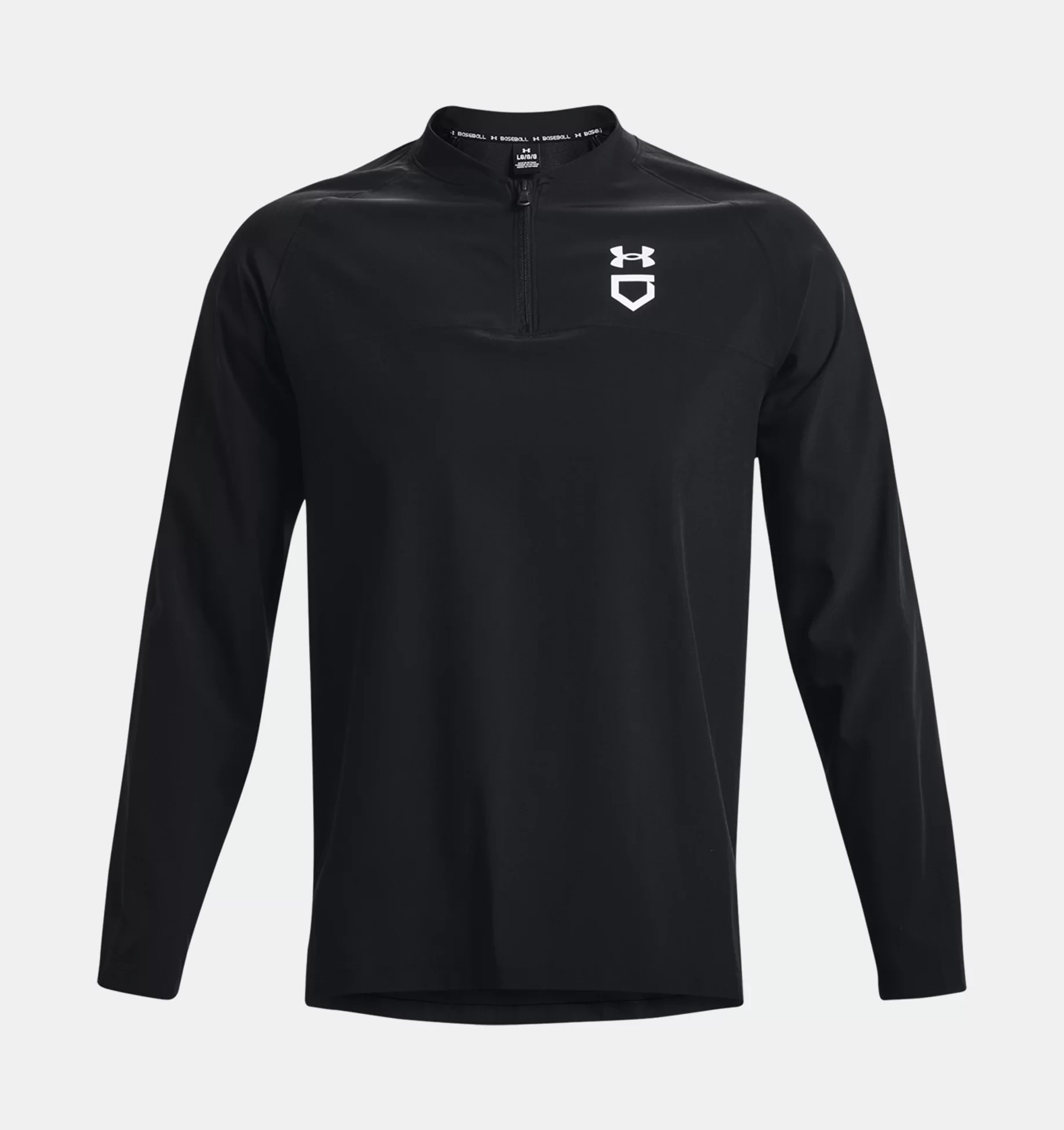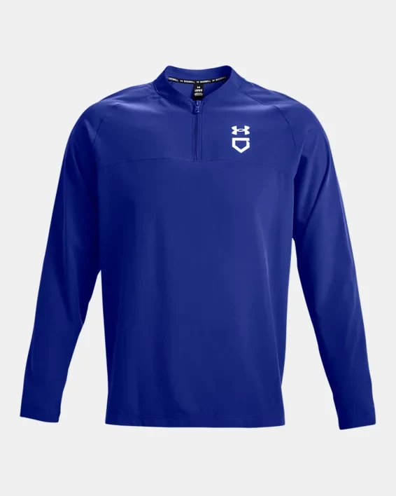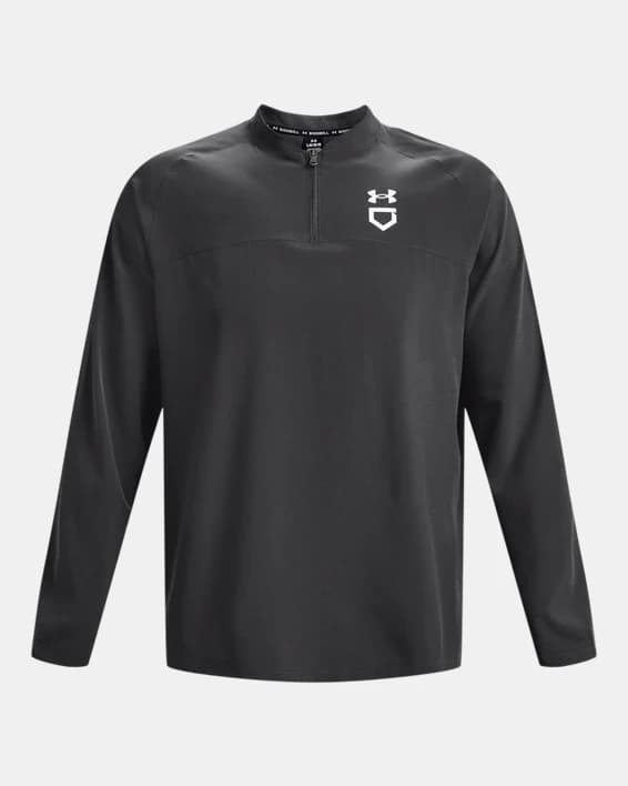 Introducing the Men's UA Utility Long Sleeve Cage Jacket, the ultimate performance outerwear for athletes and active individuals. This versatile jacket is made with UA Storm technology, which repels water without sacrificing breathability, keeping you dry and comfortable in any weather condition. The durable, stretch-woven fabric is designed to move with you, providing maximum flexibility during your workouts or practice sessions. With a full zip front and a stand collar, this jacket offers a customizable fit and added protection from the elements. Whether you're on the field, in the gym, or out for a run, the Men's UA Utility Long Sleeve Cage Jacket is the perfect choice for staying warm and focused on your training.