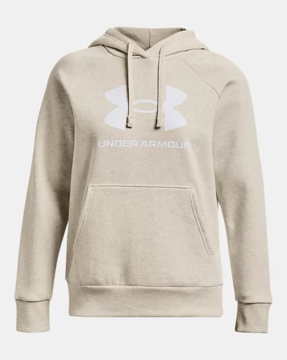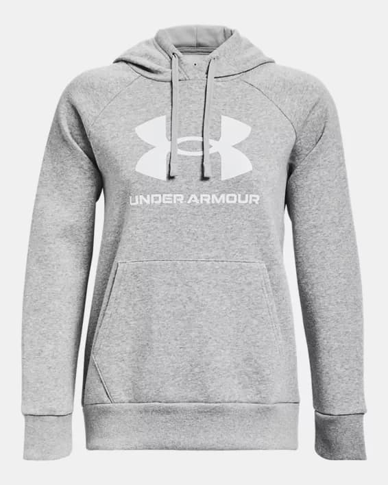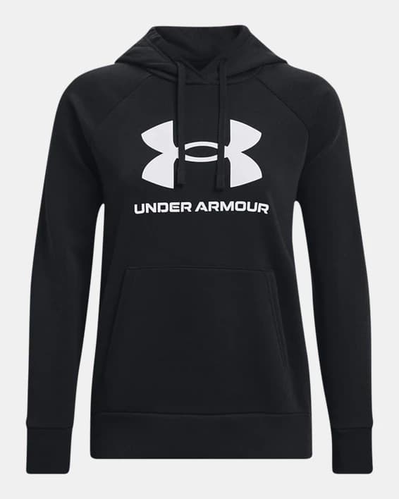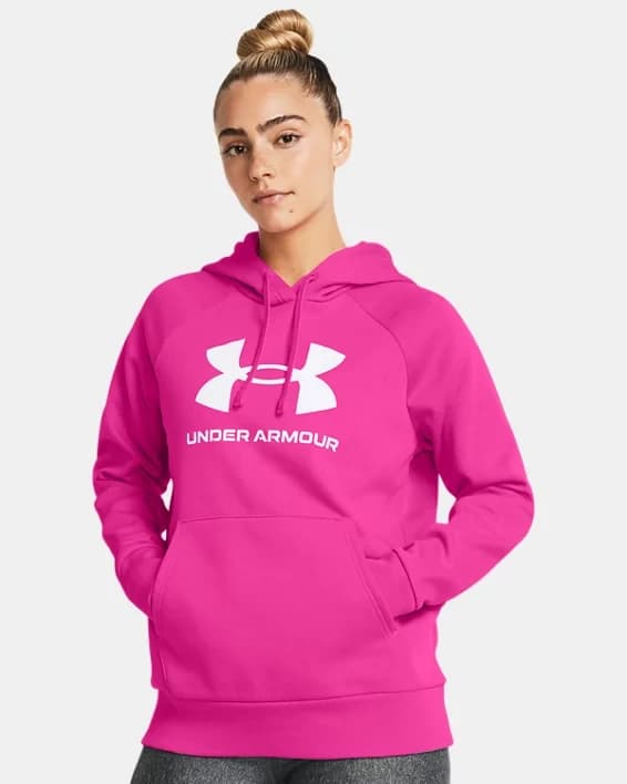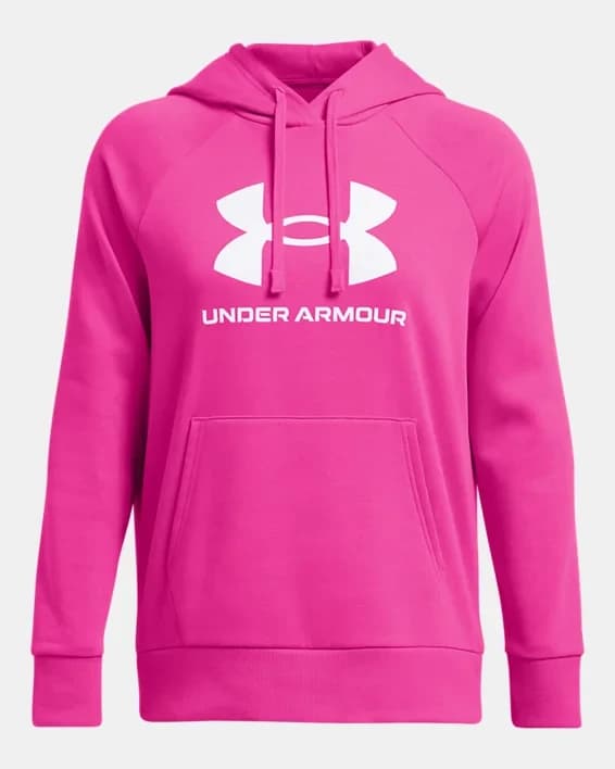 Stay cozy and stylish with the Women's UA Rival Fleece Big Logo Hoodie. This hoodie is made from a soft and comfortable cotton blend fleece, perfect for keeping you warm during the colder months. The oversized UA logo adds a bold and sporty touch to the classic hoodie design. The adjustable drawstring hood and kangaroo pocket provide added convenience and functionality. Whether you're heading to the gym or running errands, this hoodie is the perfect choice for all-day comfort and fashion-forward style.