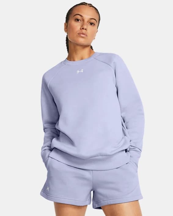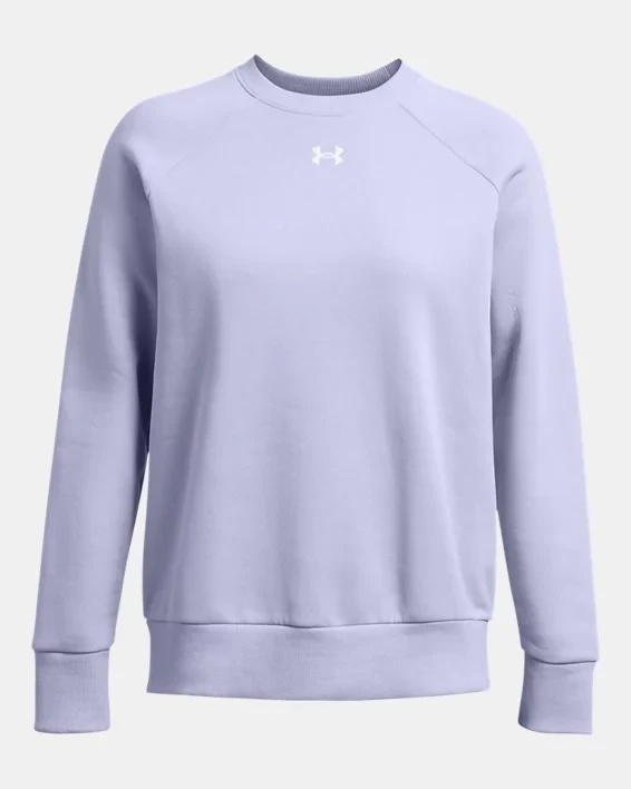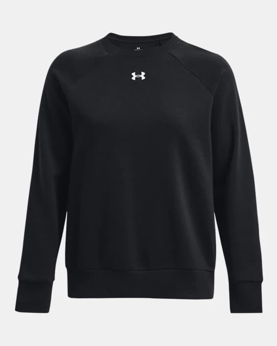 Introducing the Women's UA Rival Fleece Crew, the ultimate cozy and comfortable addition to your wardrobe. Made with a soft, mid-weight cotton blend fleece, this crewneck sweatshirt is perfect for those chilly days and nights. The raglan sleeves and ribbed collar add a stylish touch, while the loose, relaxed fit provides a flattering silhouette. Whether you're running errands or lounging at home, this UA Rival Fleece Crew is the perfect choice for casual, everyday wear. Available in a variety of colors, you'll want to stock up on this essential piece for your wardrobe.