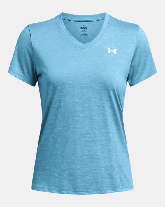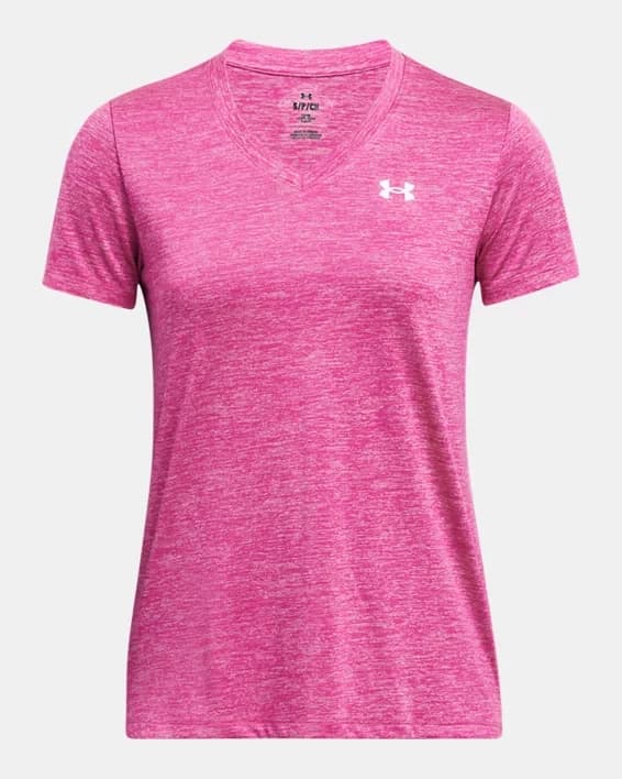 Introducing the Women's UA Tech™ Twist V-Neck Short Sleeve, the perfect addition to your workout wardrobe. This top features UA Tech™ fabric, which is quick-drying, ultra-soft, and has a more natural feel. The twist effect on the V-neck adds a stylish touch, making it versatile enough to wear for both your workouts and casual day-to-day activities. The material wicks sweat and dries really fast, keeping you cool and comfortable during your toughest workouts. Whether you're hitting the gym or running errands, the Women's UA Tech™ Twist V-Neck Short Sleeve is a must-have for any active woman.